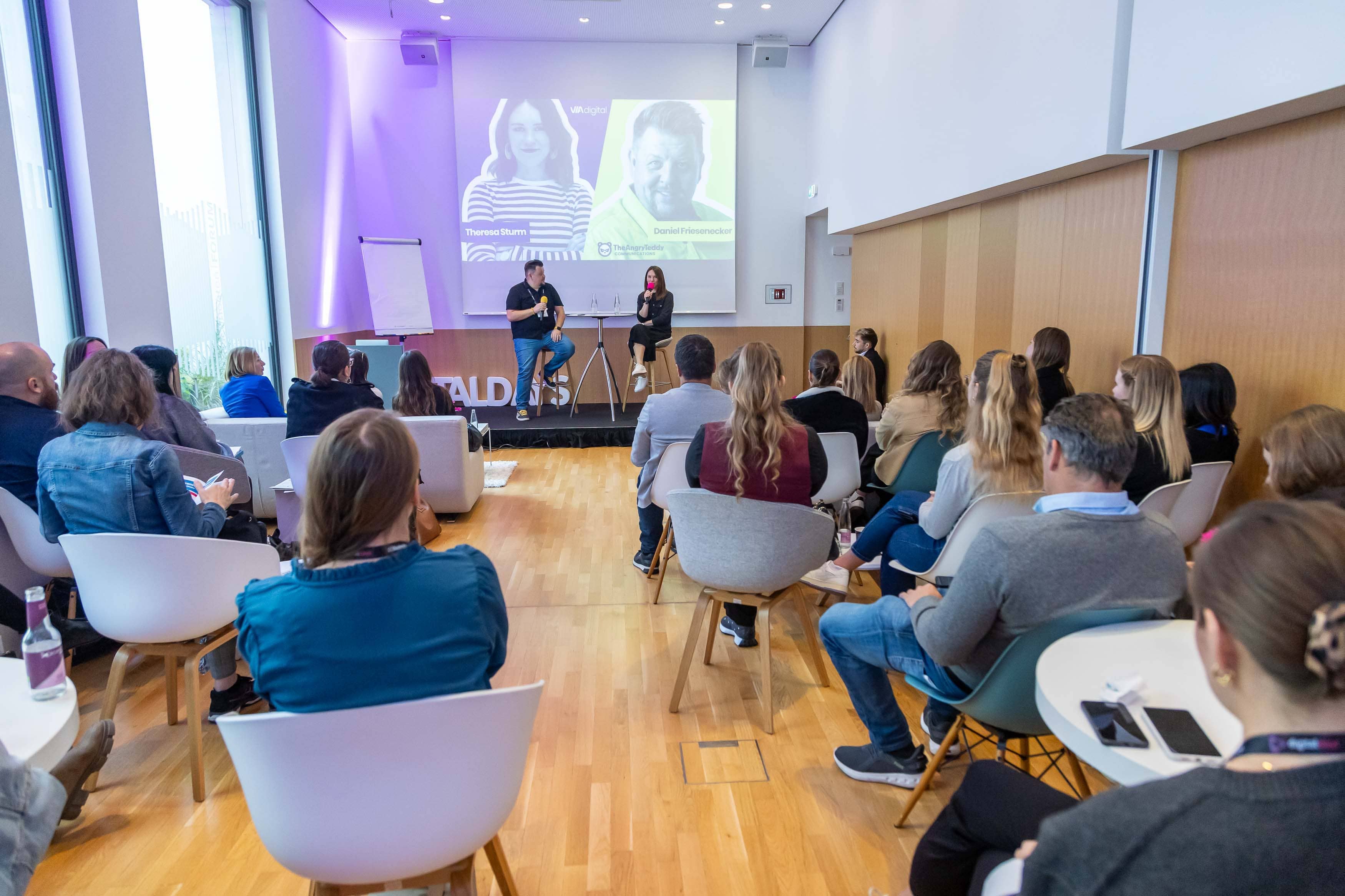 Die Bandbreite reichte von praxisnahen Einblicken in die Welt des Performance Marketings und der Social-Media-Kommunikation bis zu Fragen nach der digitalen Verantwortung und dem ethischen Umgang mit KI. Auch die Chancen für Start-ups und neue Arbeitsformen wurden diskutiert.